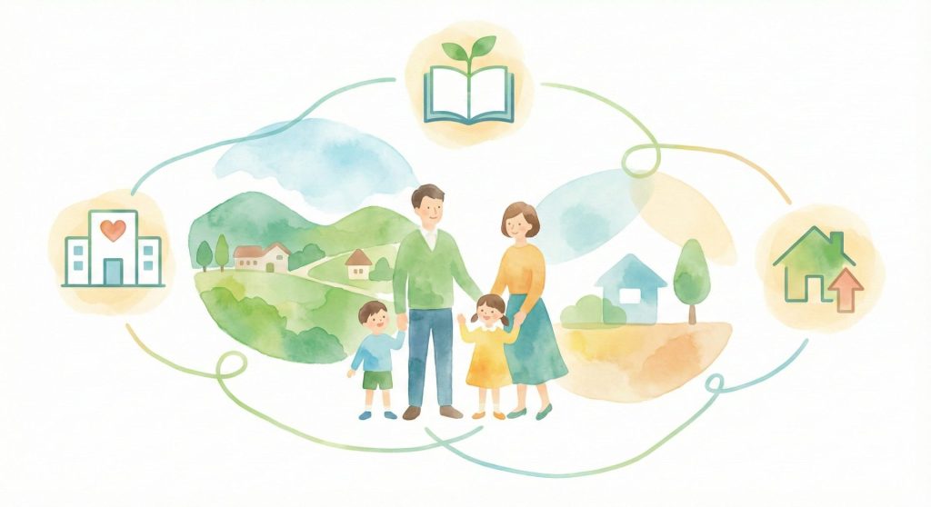 町が管理する「お試し住宅(マルチハビテーション住宅)」の利用割引や、町の情報が手元に届く広報誌のデジタル配信など、経済的なメリットと情報の透明性も確保しています。