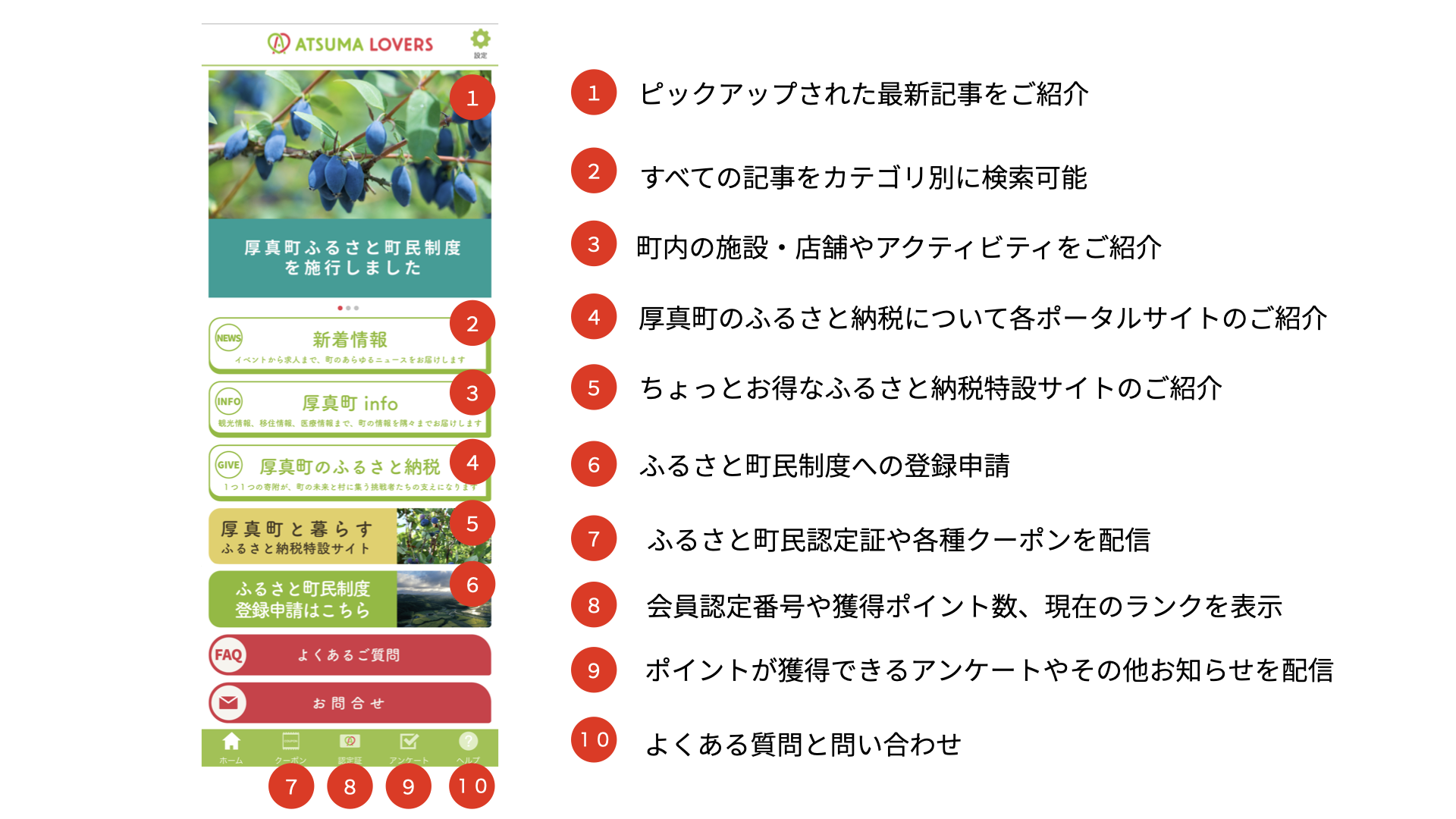 ATSUMA LOVERSに登録いただくことで、町の様々な情報交換、イベントへの参加申し込み、クーポンの取得などが可能となります。